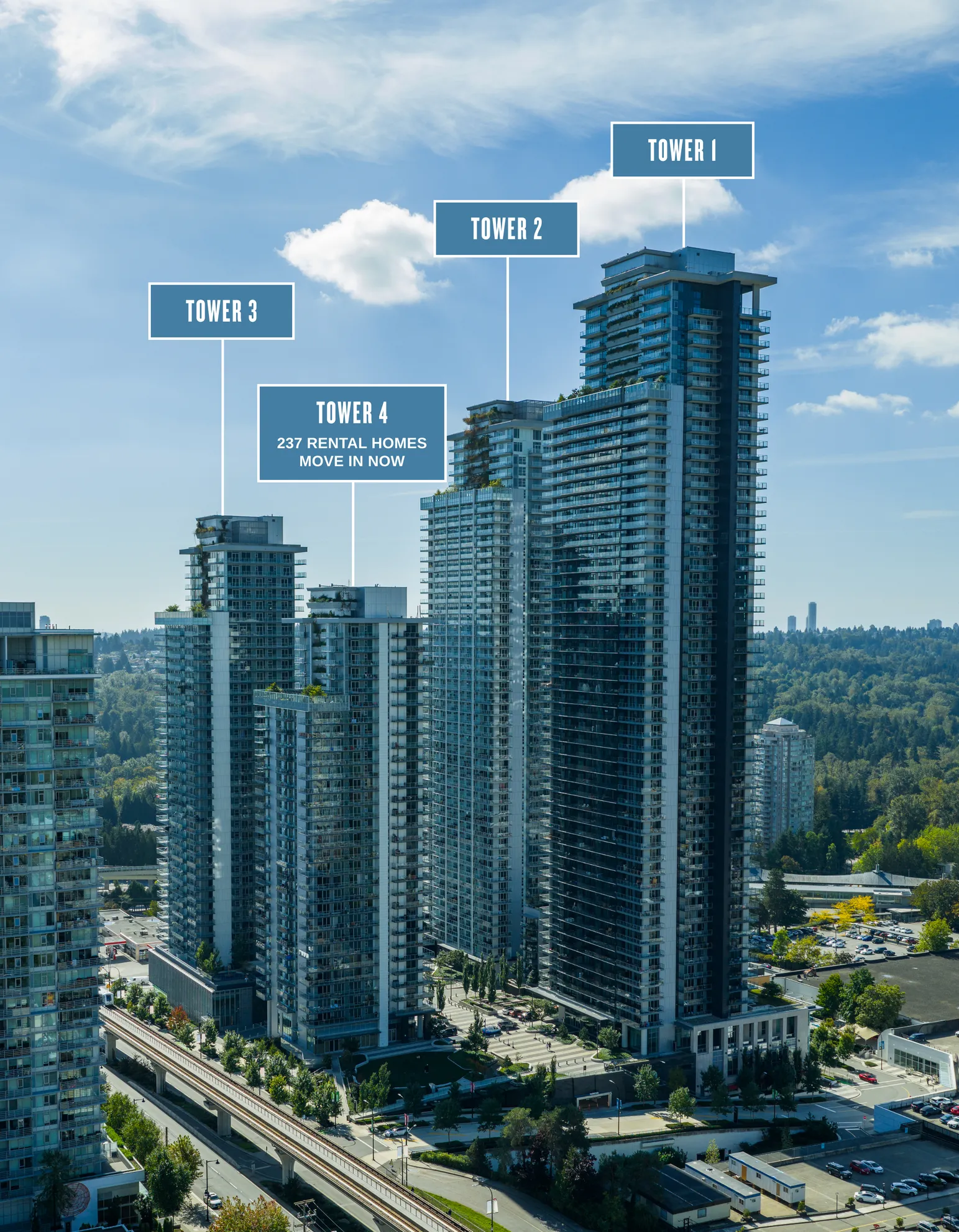 The City of Lougheed is a $7 billion, 37-acre master planned community in the geographical centre of Metro Vancouver. As the hub that connects the transit and road networks, this location is unlike any other. Three on-site SkyTrain lines and a major bus loop create one of the regions busiest transit exchanges. Major roadways are within minutes, and pedestrian and biking routes link the site with the surrounding community.